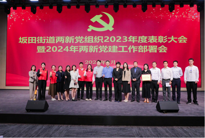 3月28日下午,坂田街道两新组织2023年度表彰大会暨2024年两新党建工作部署会在乐荟中心国际会议厅召开。坂田街道党工委委员、组织委员、两新组织党委书记朱楠,党建工作办公室副主任陈瑜丰、党建服务中心负责人黎洁珊,各园区党委书记以及2023年度两新组织获奖党员和党组织代表约一百多人参加了此次会议,壹零壹零控股集团有限公司喜获2023年度优秀党员先锋队荣誉表彰,同时还获得了坂田街道“共产党员经营户”授牌单位称号,本次表彰大会不仅是对壹零壹零集团过去一年党建工作的高度认可和肯定,更将激励集团党支部新的一年再上新台阶,铸就新辉煌。